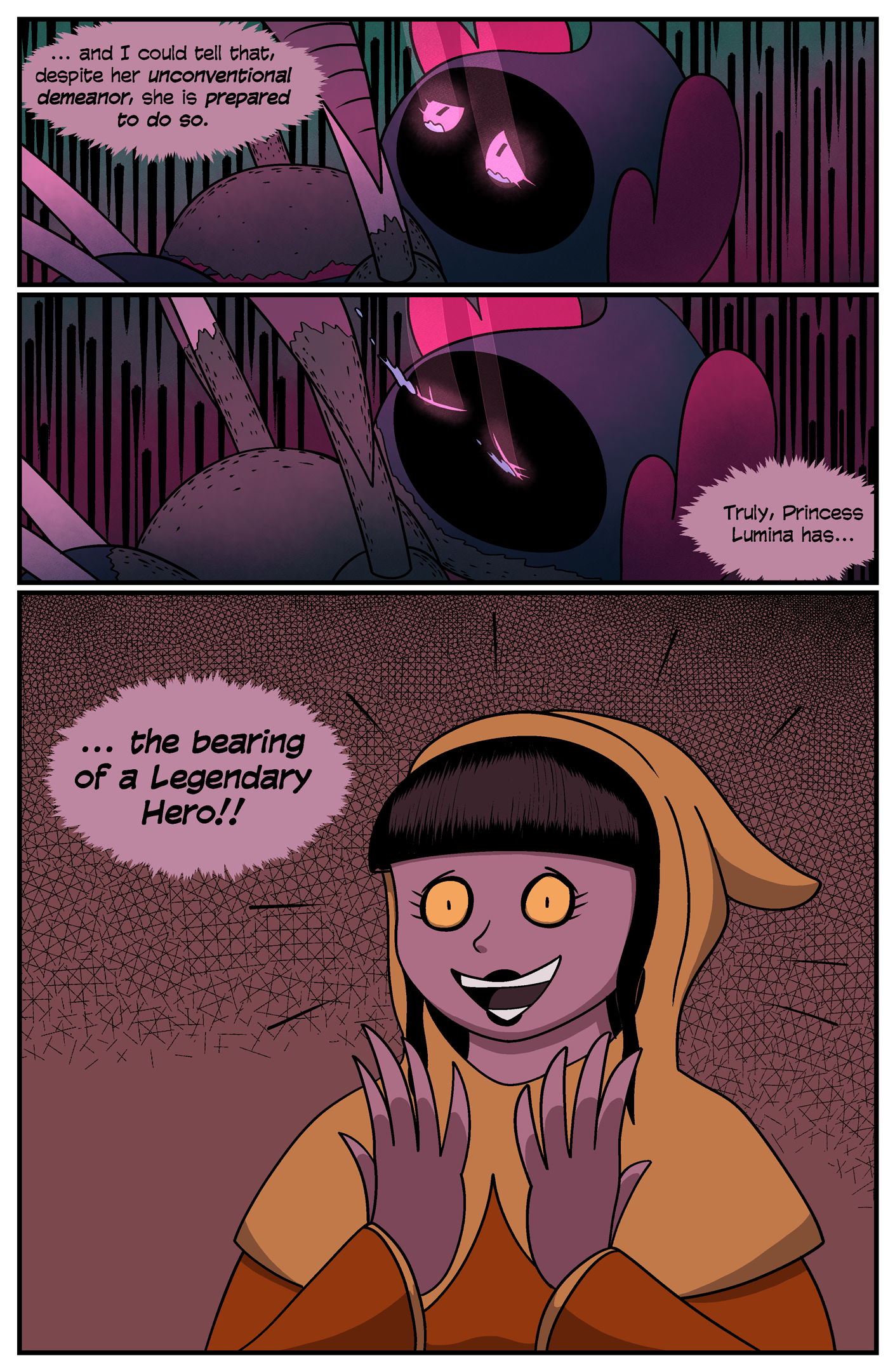 As I implied I might in the commentary for Page 909, I’m going to take a break from updating for awhile. Chapter 23 went from May 2018 til this month; it was 173 pages in total and I’m totally exhausted. Like, deeply, soul-level exhausted. Maybe that’s not entirely due to artistic fatigue; maybe it’s how 2020 has been for all of us in general. I think it’s probably both. Something about this chapter really tested my commitment to this story, and I considered just quitting a few times… but I did it! It’s over, and boy do I need a break. I need some time to recharge and to hopefully get some (if not all) of the writing done for the next chapter.