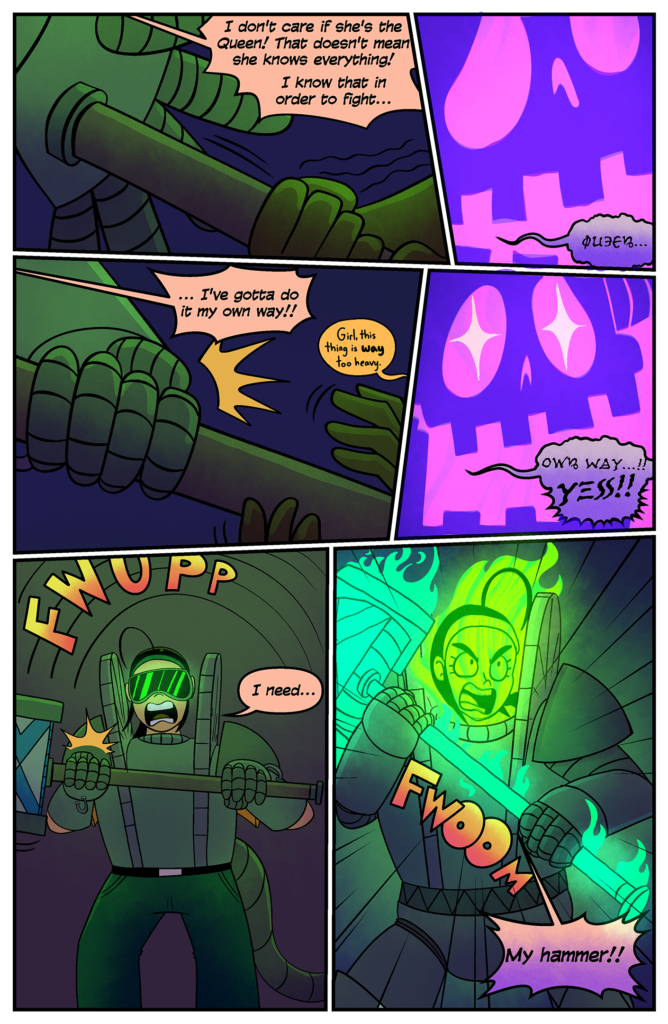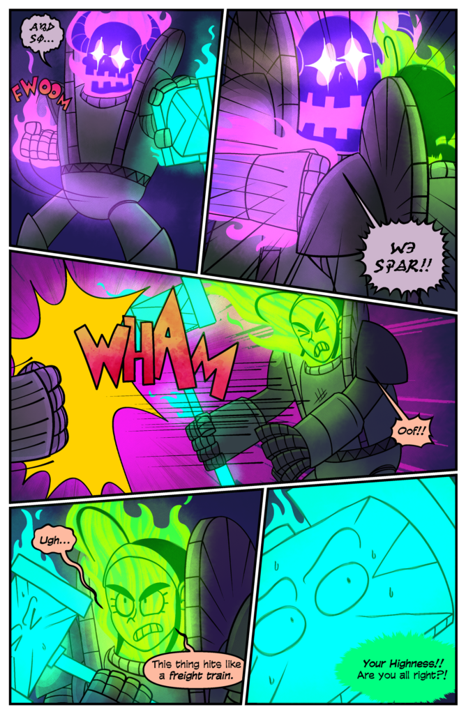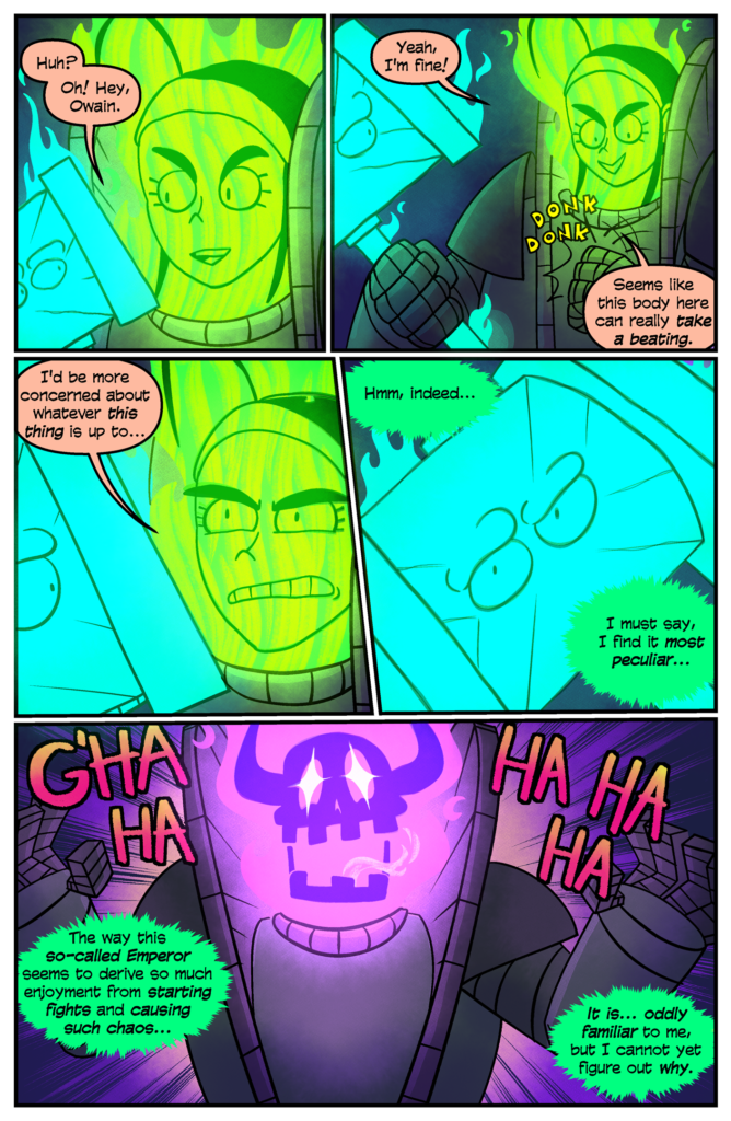 You may remember this place from all the way back on Page 195! Or not; that’s why I’m referencing the page number here. It’s the basement of Grrg’s former fortress, or the Slime King’s current house.